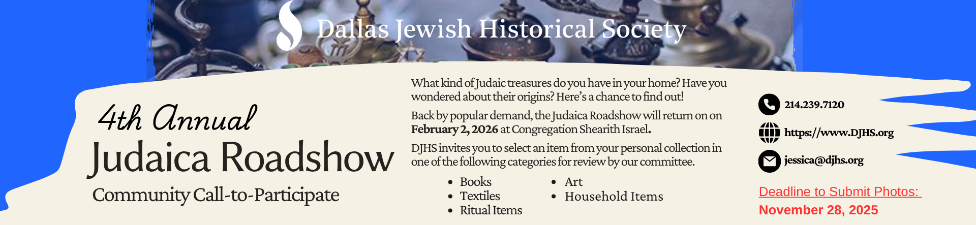 Membership dues are the life-blood of any organization–DJHS is no different. Your membership dues, combined with grants, direct donations and fundraising galas, allow us to provide excellent programming, oral history interviews and care for and preserve items in our Dallas Jewish Archives.
